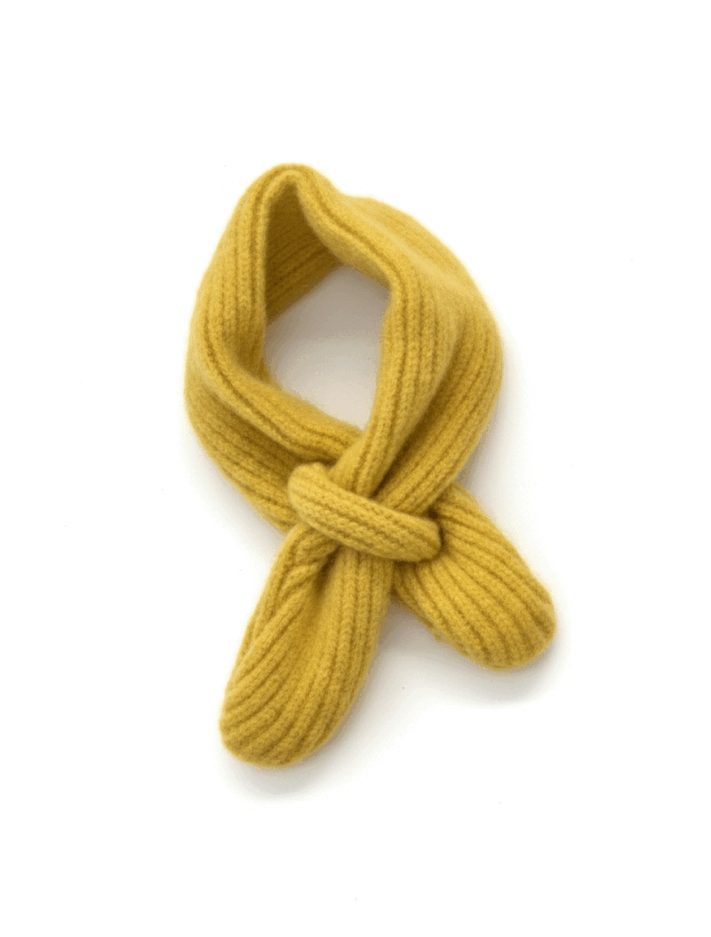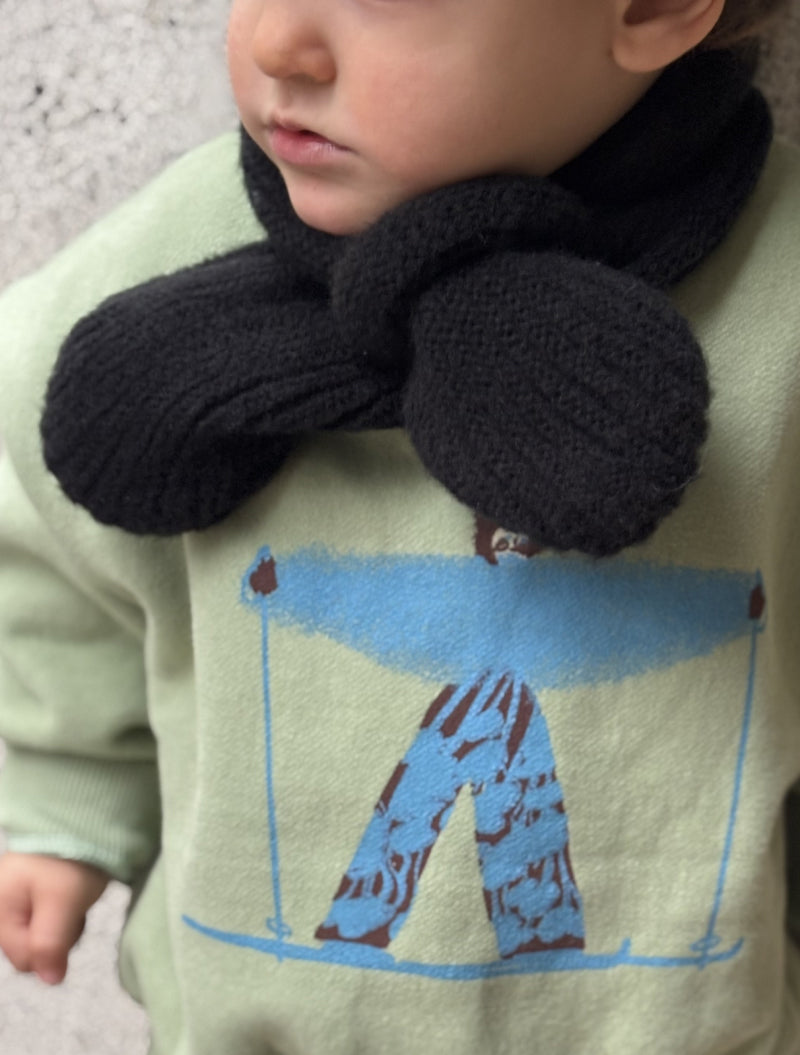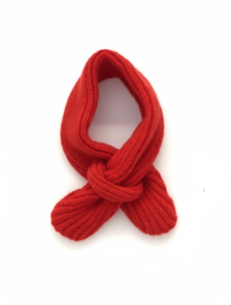 Bufanda corta de punto grueso con ojal en relieve y puntas redondeadas. No pica y queda muy ajustada al cuello para asegurar una garganta abrigada. Es ideal para los peques, porque no molesta nada y es difícil de perder ;)