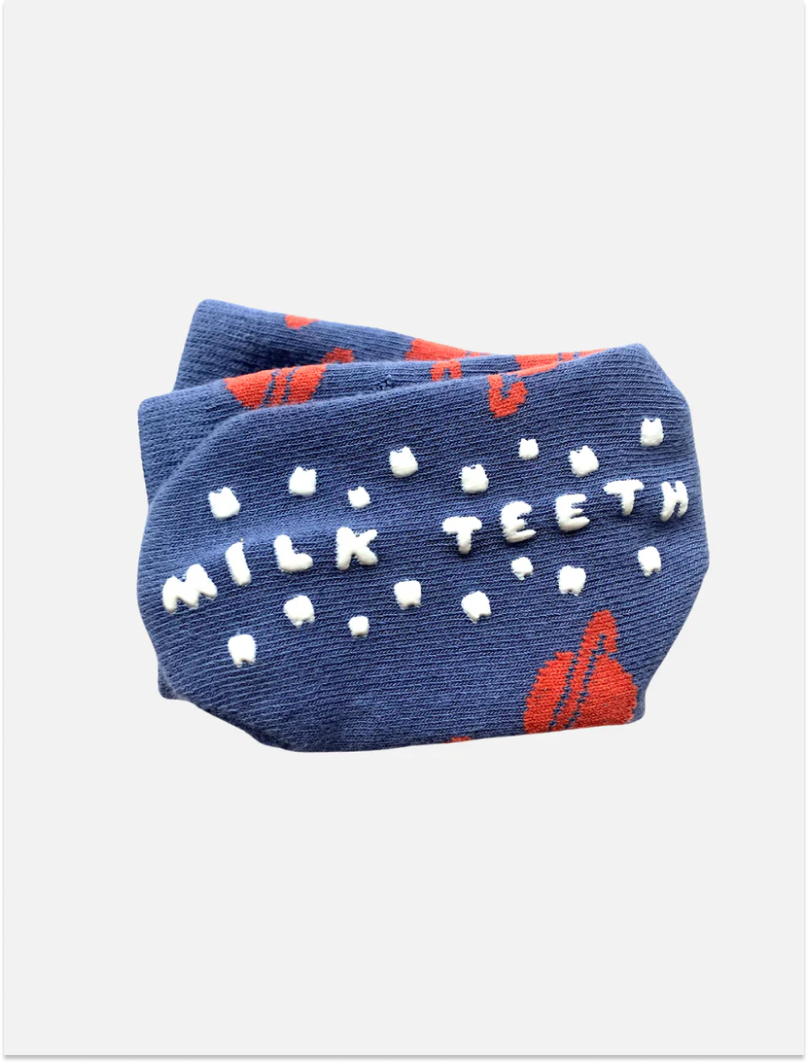 Calcetines antideslizantes espaciales con estampado de planetas Saturno en color rojo vibrante. Altura media caña, disponibles en dos tallas.