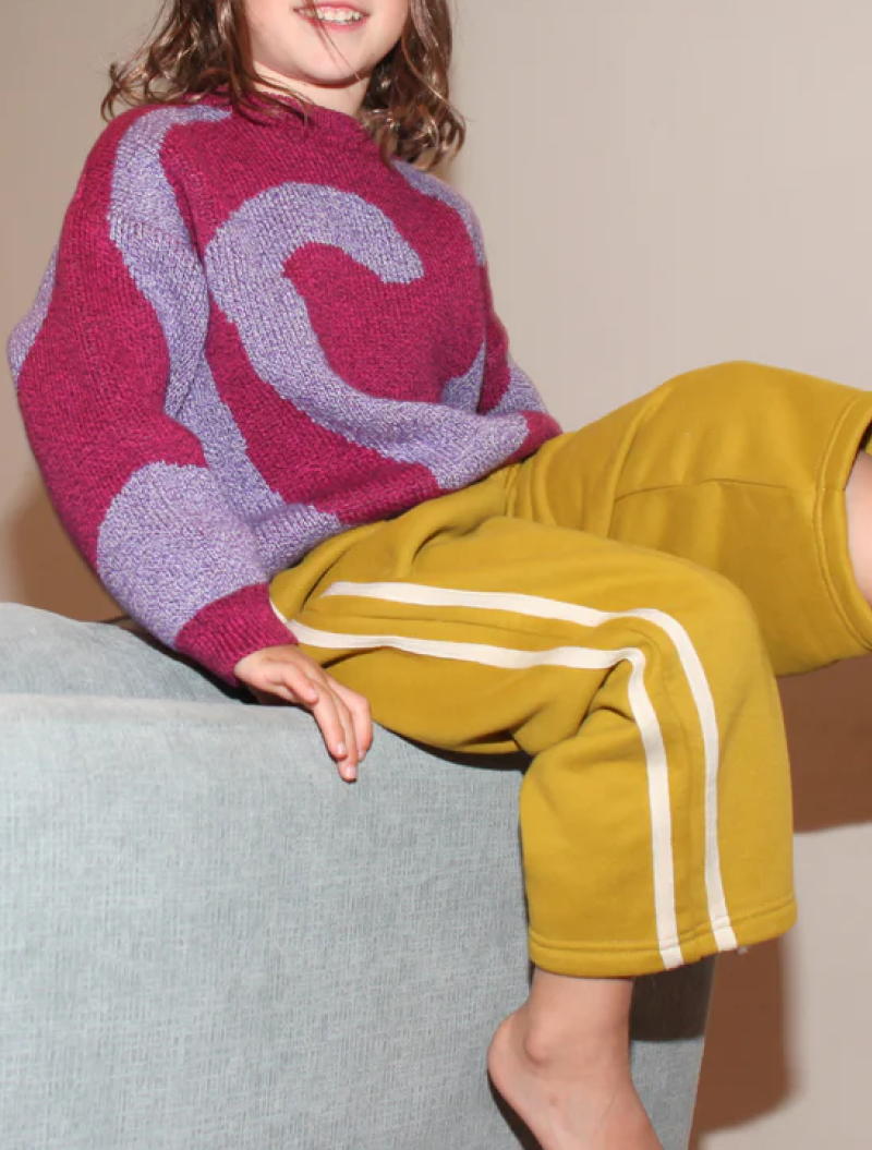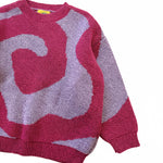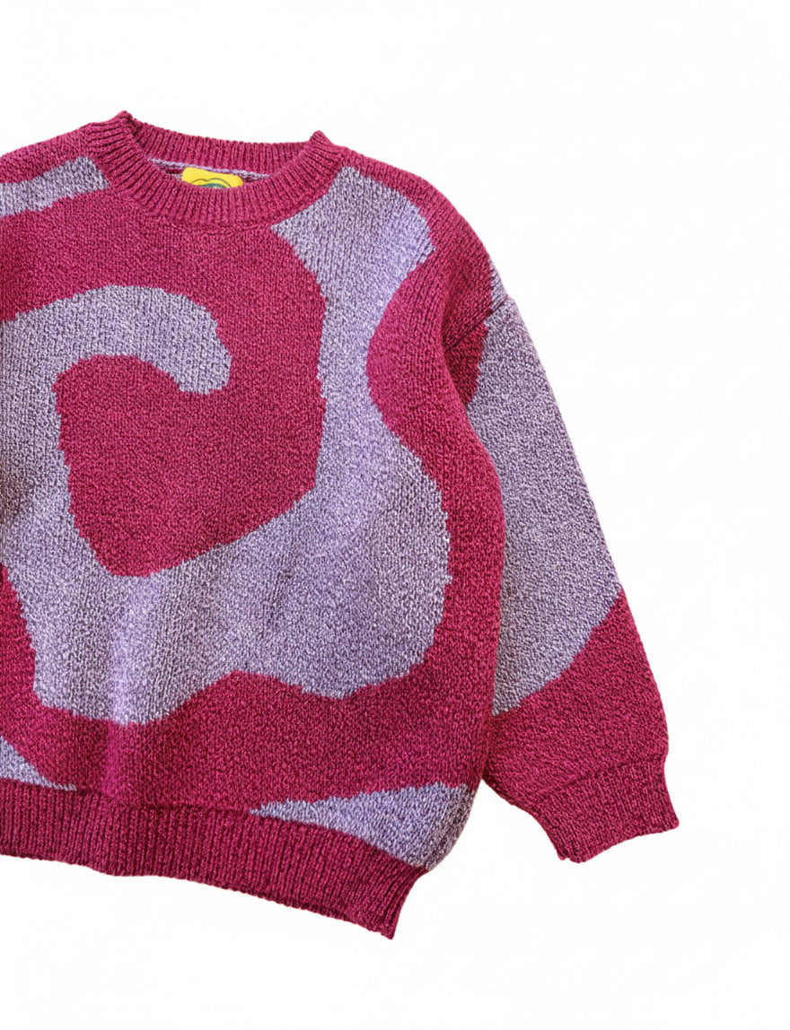 Jersey unisex tejido en suave algodón 100% orgánico. Estampado maxi de espiral bicolor. Suéter de cuello redondo y corte cuadrado con hombros caídos, puños y cinturilla de canalé y un ajuste ligeramente amplio. Suelto, cómodo y no pica. Disponible en dos colores: magenta y verde.