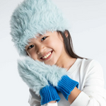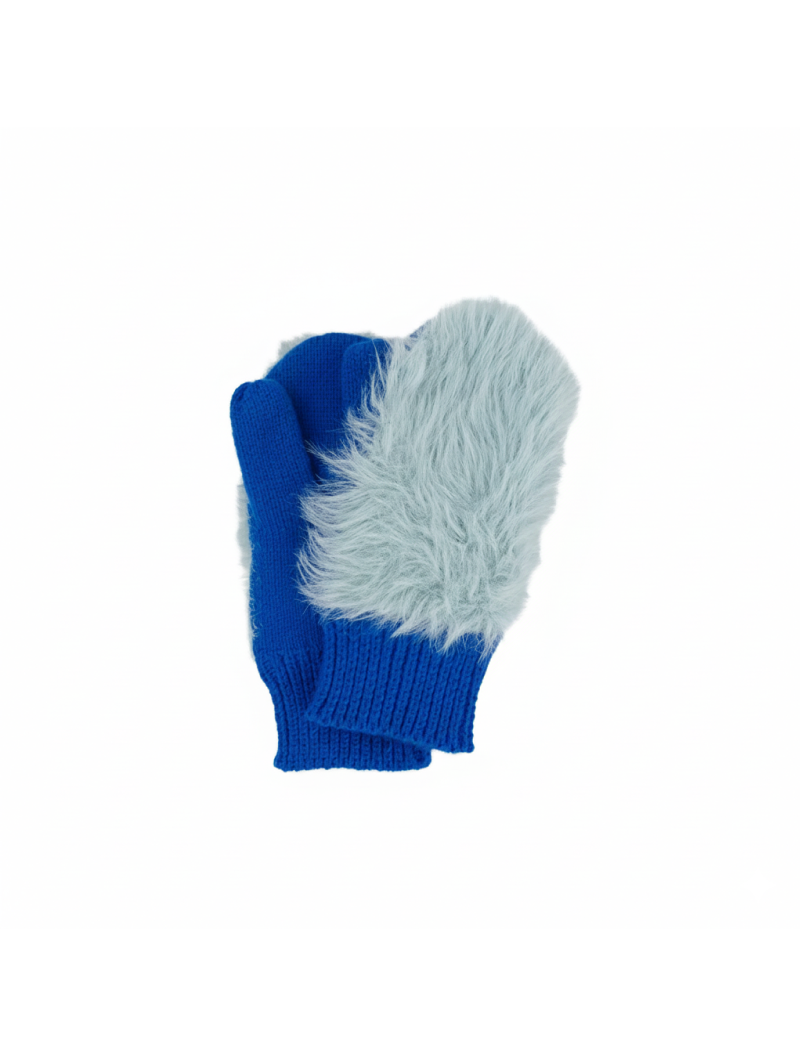 Adorables manoplas bicolor de pelo sintético. Palmas de punto suave y puños acanalados elásticos.