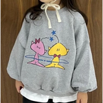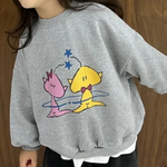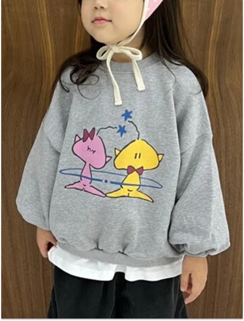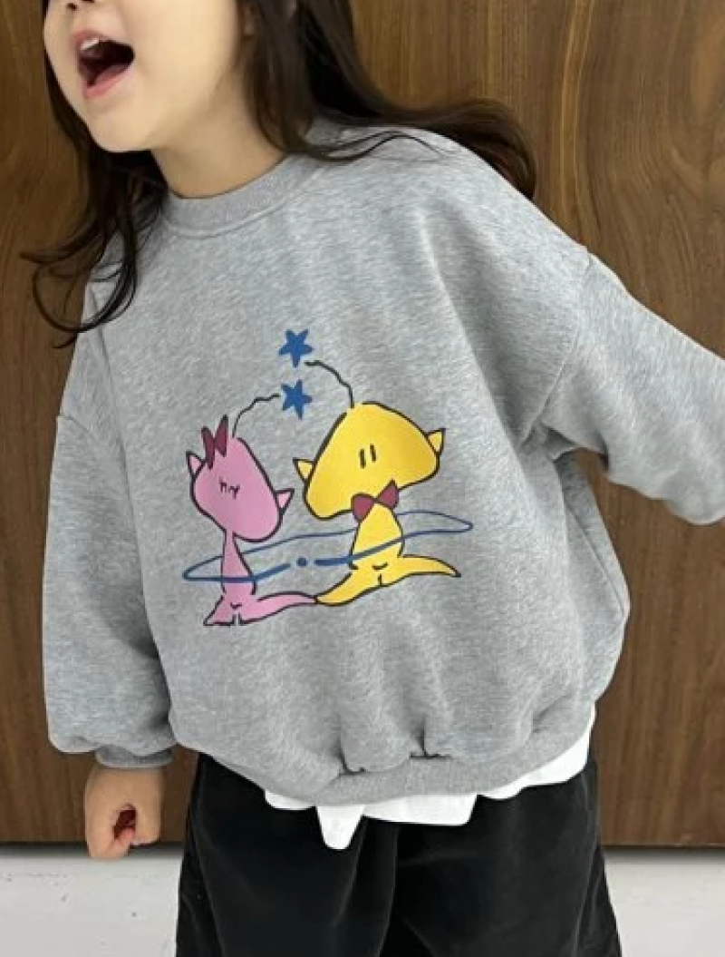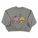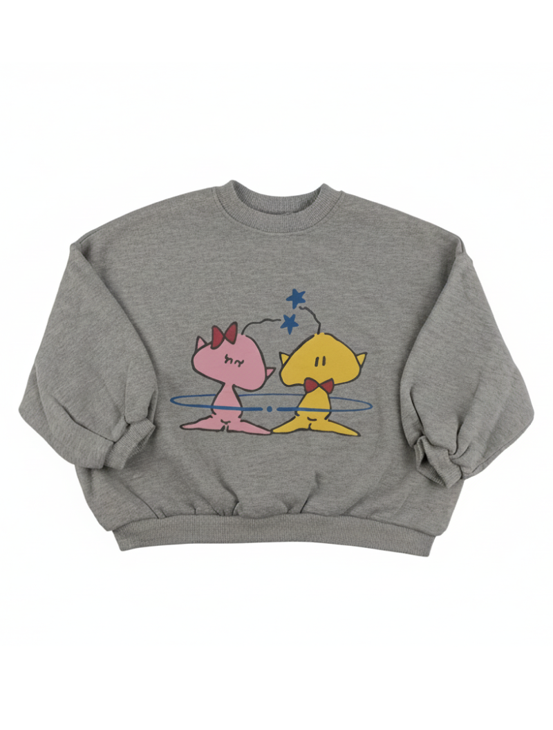 Sudadera unisex básica pero total. Color gris para combinar con todo, pero con un corte muy estiloso: oversize con mangas globo. Las ilustraciones retro de unos seres de otro planeta en colores vintage convierten esta sudadera básica en una sudadera divertida y única.