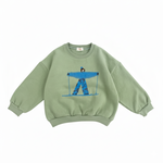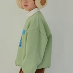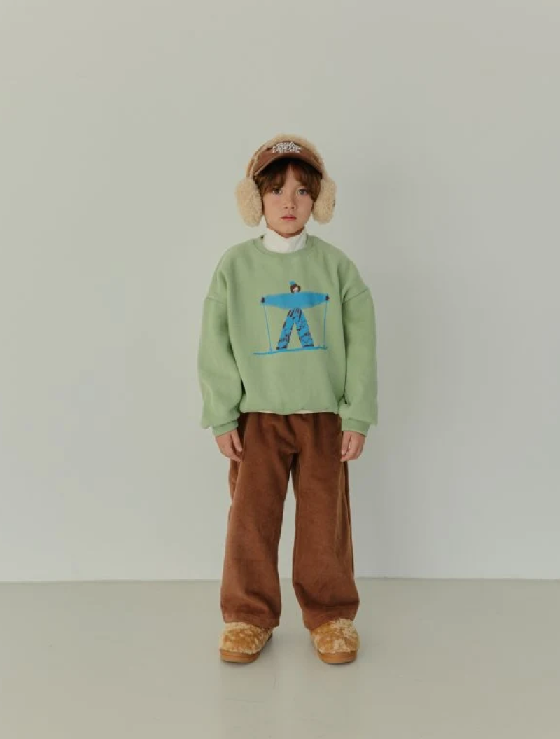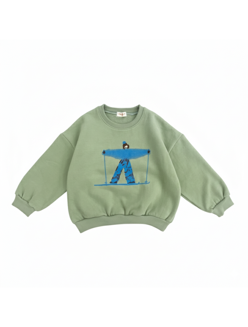 Sudadera unisex con ilustración frontal. Color verde menta con un corte muy estiloso: oversize con hombros caídos. El dibujo de un esquiador en azul con textura convierten esta sudadera básica en una sudadera divertida y única.